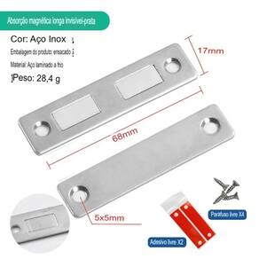 Diga Adeus às Portas que Não Fecham Fecho Magnético Imã Ultra Forte Tipo Chapinhas Cansado de portas de armários, gavetas e guarda-roupas que ficam abrindo sozinhas ou não se alinham perfeitamente Nosso Fecho Magnético Ultra Forte é a solução definitiva para dar estabilidade e um acabamento aos seus móveis. Por Que Nosso Fecho Magnético é a Melhor Escolha Poder de Fixação Superior: Equipado com imã, este fecho oferece uma força magnética excepcional, garantindo que portas e gavetas permaneçam fechadas de forma segura e discreta, sem falhas. Design Compacto e Discreto: Com seu perfil alongado e acabamento na cor prata, ele se adapta a qualquer tipo de móvel e decoração. É ideal para locais com espaço limitado, oferecendo um fechamento eficiente sem comprometer a estética. Instalação Simples e Rápida: Pode ser instalado com parafusos ou com fita dupla face, que acompanham o produto, para uma montagem fácil e segura. O design permite uma instalação versátil em cantos e bordas, tornando o processo de fixação simples para qualquer pessoa. Durabilidade e Resistência: Fabricado com materiais de alta qualidade, este fecho é feito para suportar o uso diário, oferecendo uma solução duradoura e confiável para a sua casa ou escritório. Uso Multifuncional: Perfeito para armários de cozinha, gabinetes de banheiro, portas de guarda-roupa, móveis de escritório e qualquer outra aplicação onde um fechamento seguro e invisível seja necessário. Especificações do Produto: Material: Aço Inoxidável resistente com imã Cor: Prata Formato: chapinha longa Conteúdo da Embalagem: 2 Chapinhas Magnéticas - longas 4 Parafusos para instalação 02 Fitas Adesivas Adquira Agora e Transforme Seus Móveis Marca: Não Informado Ean: 7898485370496