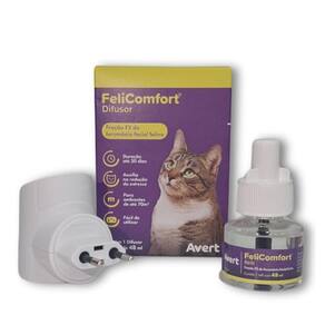 Felicomfort Difusor de Ambientes para Gatos com Refil 48ml Felicomfort Difusor de Ambientes para Gatos com Refil 48ml O FeliComfort Difusor de Ambientes é uma solução eficaz para reduzir o e a ansiedade em gatos. Liberando feromônios calmantes, ajuda a criar um ambiente tranquilo e confortável para seu pet. Composição: Contém feromônios sintéticos semelhantes aos que os gatos produzem naturalmente para sinalizar segurança e bem-estar. Modo de Uso: Conecte o difusor na tomada no ambiente onde o gato passa mais tempo. O refil de 48ml dura até 30 dias e cobre uma área de até 70m. Indicação: Indicado para gatos que sofrem de , ansiedade, mudanças no ambiente ou comportamentos indesejados. Ideal para uso em lares com múltiplos gatos ou em situações de mudança. Marca: Não Informado Ean: 7896112407843