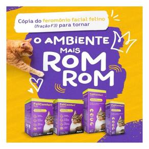 Felicomfort Spray 60ml Eficaz para Acalmar os Gatos da Avert Felicomfort Spray 60ml Eficaz para Acalmar os Gatos da Avert O FeliComfort Spray 60ml é uma solução eficaz para reduzir o e promover bem-estar nos gatos. Com feromônios sintéticos, ajuda a tranquilizar os felinos e prevenir comportamentos relacionados à ansiedade. Composição: Contém feromônios sintéticos que imitam os naturais dos gatos, proporcionando uma sensação de segurança e conforto. Modo de Uso: Aplique o spray nas áreas de convivência do gato, como camas, arranhadores ou caixas de transporte, antes de eventos estressantes. Indicação: Indicado para gatos que sofrem de e ansiedade em situações como viagens, mudanças de ambiente ou presença de novos animais em casa. Marca: Não Informado