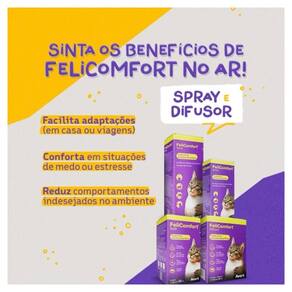 Felicomfort Spray 60ml Eficaz para Acalmar os Gatos da Avert Felicomfort Spray 60ml Eficaz para Acalmar os Gatos da Avert O FeliComfort Spray 60ml é uma solução eficaz para reduzir o e promover bem-estar nos gatos. Com feromônios sintéticos, ajuda a tranquilizar os felinos e prevenir comportamentos relacionados à ansiedade. Composição: Contém feromônios sintéticos que imitam os naturais dos gatos, proporcionando uma sensação de segurança e conforto. Modo de Uso: Aplique o spray nas áreas de convivência do gato, como camas, arranhadores ou caixas de transporte, antes de eventos estressantes. Indicação: Indicado para gatos que sofrem de e ansiedade em situações como viagens, mudanças de ambiente ou presença de novos animais em casa. Marca: Não Informado Ean: 7896112407850
