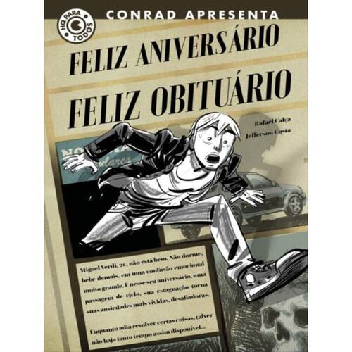 Miguel Verdi não está bem. Anda sem dormir, bebe demais e vive mergulhado em uma confusão emocional muito grande. E ainda por cima é seu aniversário, uma passagem de ciclo, uma nova etapa em sua vida. Tecnicamente, claro. Mas o sentimento de estagnação é real e datas assim só tornam as ansiedades mais potentes, vívidas, e um tanto quanto desafiadoras. Aos 20 anos, Miguel está adiando resolver certas coisas, mas talvez não haja tanto tempo disponível... Dos premiados autores Rafael Calça e Jefferson Costa (Jeremias - Pele), Feliz Aniversário, Feliz Obituário é um quadrinho intrigante e curioso que vai prender o leitor do começo aos seus muitos fins. A edição também contém textos inéditos e Espera, a primeira história em quadrinhos da dupla reeditada especialmente para o selo HQ Para Todos.