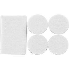 Medida do feltro autoadesivo: Redondo: 38 mm; Retangular: 76 mm x 50 mm