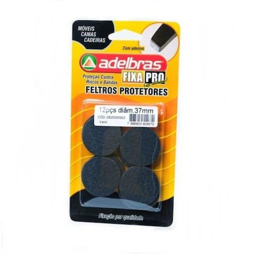 Feltro Grande Redondo 37 Mm 12 Peças Com Adesivo Composição: fibras 100% poliéster , adesivo acrílico, linear em papel ou plástico siliconado. 37 Mm 12 Peças Uso e informações adicionais: Ideal para pisos, sob pés de cadeiras, mesas, móveis, cachepôs, paredes, atrás de maçanetas, quadros, sob luminárias, vasos, objetos, esculturas, outras superfícies, etc. Ean: 7896603804670