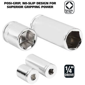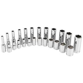 6 pontos profundos 4, 5, 5.5, 6, 7, 8, 9, 10, 11, 13, . Raso 6 pontos 4, 5, 5.5, 6, 7, 8, 9, 10, 11, 13 , . Vem com uma bandeja de zenamento moldada Aço cromo vanádio para resistência e durabilidade. O soquete métrico de 22 peças da Great Neck é fabricado usando aço cromo vanádio de alta qualidade para resistência, durabilidade e resistência à corrosão. Os soquetes possuem um design Posi Grip No Slip, fornecendo poder de preensão superior sem arredondar os pontos de fixação. Inclui uma bandeja de zenamento moldada Marca: Não Informado