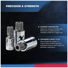 UMA FERRAMENTA DEVE TER para apertar e desapertar parafusos e parafusos triplos de alto torque, comumente s no alternador e na placa de pressão de carros europeus como BMW, Mercedes, VW, Audi, Porsche. DURABILITY bits feitos de aço de liga S2 premium para qualidade superior dureza que reduz o desgaste e garante a longevidade. FORÇA DO TORQUE soquetes de aço cromo vanádio de alta resistência fornecem torque superior para maior poder de torneamento com acabamento cromado no espelho para resistência à corrosão. BITS DE PRECISÃO pontas de broca usinadas com precisão e automaticamente para garantir o tamanho exato as extremidades são inseridas suavemente nos prendedores e protegem os bits e os prendedores das bordas danificadas. ZENAMENTO ORGANIZADO o conjunto inclui um estojo de plástico resistente para zenamento e fácil transporte. O conjunto inclui Movimentação de 1, 4 , , Unidade de 3, 8 , , , , à prova de violação Movimentação de 1, 2 16mm inviolável, 18mm inviolável. Conjunto de ferramentas mecânicas para carros europeus O conjunto de soquetes ranhurados para pontas triplas quadradas Neiko XZN é um conjunto de ferramentas ideal para mecânicos que usam ferramentas de torque manual em motores automotivos e motociclos europeus, onde são comuns os fixadores XZN , triplo quadrado. Os prendedores XZN de 12 estrelas , triplo quadrado são frequentemente s em aplicações automotivas de alto torque, como parafusos de cabeça de cilindro e componentes do trem de força. Aqui, os muitos ângulos dos soquetes de bits correspondentes podem gerar o aumento do torque necessário. Cada um dos 10 bits métricos deste conjunto é encaixado em seu próprio soquete de unidade de orientação universal 1, 4 de polegada, 3, 8 de polegada ou 1, 2 de polegada para aumentar o torque potencial e limitar o desconforto do bit. Os bits são forjados em liga de aço S2 tratada termicamente para dureza superior, reduzindo o desgaste e garantindo a longevidade, enquanto cada soquete de broca é cromado para evitar ferrugem e corrosão. Os soquetes de bits atendem ou excedem os padrões ANSI