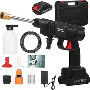 Ferramenta de aplicação lavadora alta pressão portatil lava a jato ferramenta de aplicação lavadora alta pressão portatil lava a jato a lavadora portatil de alta pressão ferramenta de aplicação lava jato é tudo o que você precisa para realizar suas tarefas de limpeza de uma maneira rápida e com muito mais mobilidade. Extremamente versátil, permite a extração de água de várias fontes, tais como baldes, tanques de água, bacias, lagos e piscinas. Com uma pressão de até 48 bar/710 psi, possui 5x mais pressão do que uma mangueira de jardim e minimiza com isso o uso de água enquanto limpa completamente seus móveis de jardim, calçadas, paredes e janelas, bicicletas, motocicletas, equipamentos esportivos e equipamentos de camping. Informações técnicas:alcance do curso dagua = 6 a 10 metroscapacidade da super bateria: 48 vtempo de uso = aproximadamente 3 horastensão do carregador: ac 110-240v 50/60hzcomprimento da mangueira de água: 5mpeso ferramenta de aplicação com equipamento : 1250 g 1,25 kg pressão: até 48 bar dependendo da distância da fonte materiais: abs e cobrefluxo de água: 10l/minitens inclusos:1x máquina de lavar carro. Potência 1250w1x haste de extensão1x tubulação de água1x bateria de ions de lítio1x carregador de bateria bivolt inteligente avisa quando está carregada 2x conectores de bico1x filtro em aço inox1x recipiente para sabão/detergente de 300ml Marca: Good Home