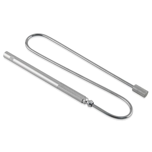- Ferramenta magnética flexível: esta ferramenta magnética tem um eixo dobrável que alcança até 48 cm de comprimento para navegar por espaços estreitos como sob móveis e entre eletrodomésticos. Com um puxão de 900 g, este ímã recupera itens de metal ferroso com facilidade.