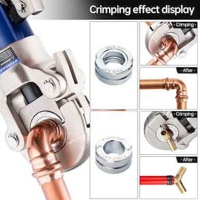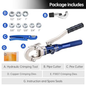 Ferramenta de crimpagem de tubo hidráulico para tubo de cobre e anel de cobre de tubo ASTM F1807 Pex Material do corpo: liga de alumínio Faixa de crimpagem: 1/2", 3/4" e 1" para tubo de cobre, 3/8", 1/2", 5/8", 3/4", 1" matrizes para anel de cobre ASTM F1807 Pex Pipe Força de crimpagem: 60KN Acessórios de crimpagem: 1/2", 3/4" e 1" para tubo de cobre, 3/8", 1/2", 5/8", 3/4", 1" matrizes para anel de cobre ASTM F1807 Pex Pipe - O corpo é feito de liga de aluínio, evita efetivamente o vazamento de óleo - Para tubo de cobre 1/5.1 cm, 3/10.2 cm, 2.5 cm e ASTM F1807 Pex Pipe Copper Ring 3/20.3 cm, 1/5.1 cm, 5/20.3 cm, 3/10.2 cm, 2.5 cm
