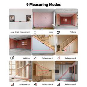 Ferramenta de medição a laser bilateral de 393 pés Classe a laser: Classe 2 (IEC/EN60825-1/2014), < 1 mW de potência de saída - Tecnologia de medição bilateral de alta precisão: esta ferramenta bilateral de medição a laser pode alternar entre os modos bidirecional e unidirecional. A referência de medição pode ser ajustada para atender a diferentes trabalhos de medição. Você não precisa mover a ferramenta de medição a laser com frequência, o que melhora muito a eficiência do seu trabalho e economiza seu tempo. Distância máxima de medição bidirecional de até 120 m, distância de medição unidirecional de até 196 pés-60 m, precisão de até ± 1/40.6 cm a 10.1 m - ?Tela LCD retroiluminada? Esta ferramenta de fita métrica a laser suporta rotação automática da tela. Ele gira automaticamente a tela dependendo do ângulo que você coloca, facilitando a leitura de dados. Você também pode bloquear a tela definindo a trava. Uma boa escolha para substituir a fita métrica a laser - ?9 modos de medição e várias funções? Esta ferramenta de medição a laser oferece 9 modos de medição, comprimento, área, volume, ângulo, área da parede e 4 modos pitagóricos, que podem atender às suas várias necessidades de medição em diferentes cenários. Unidades de M/entrada/pés + comutáveis, 100 grupos de dados podem ser armazenados para recuperação, com modo de adição e subtração para cálculo de dados de forma eficaz, modo de autocalibração. Você também pode obter o valor médio, máximo e mínimo facilmente medindo continuamente - ?Medidores de distância a laser recarregáveis Tipo? Nosso medidor a laser bilateral tem uma bateria recarregável de íons de lítio de 3,7 V 850 mAh embutida. Leva cerca de 1,5 horas para carregar totalmente e dura cerca de 5 horas. Você pode carregar este laser de medição de distância o dia todo e carregá-lo a qualquer momento com um cabo de carregamento tipo C. O status da bateria pode ser verificado através do visor LCD transparente - ?Sensor de ângulo digital e parte traseira magnética forte?Com o sensor de ângulo embutido, esta ferramenta de medição de distância a laser pode medir o ângulo em tempo real. Você pode obter rapidamente a direção e melhorar a precisão da medição. Com a parte traseira magnética, você pode fixar esta fita métrica digital com laser em superfícies ferromagnéticas para evitar se mover quando segurada com as mãos e melhorar a precisão, como tubos, conduítes elétricos, lâminas de serra de esquadria para marcenaria, aberturas e dutos - ?Mais recursos e o que você recebe?A medida de distância a laser é classificação IP54. O suporte rosqueado de 1/10.2 cm na parte traseira permite que seja anexado ao tripé para uso. Você receberá: 2 anos de serviço pós-venda, 1 ferramenta bilateral de medição a laser, 1 placa de medição auxiliar, 1 cabo tipo C, 1 alça de mão, 1 bolsa de transporte, 1 manual do usuário.