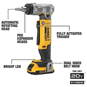 Expande a tubulação Pex Type A de Possui uma ação de cabeça rotativa automática para expansão uniforme A ferramenta de expansão pex vem com acionamento completo do gatilho para uso em espaços apertados Luz de trabalho LED brilhante para ajudar a iluminar áreas escuras Ganchos de cinto e ganchos de dupla face para zenamento conveniente Sobremoldagem de borracha para aderência confortável e ergonômica ATENÇÃO BATERIA 20V MAX E CARREGADOR NÃO INCLUSOS Marca: Não Informado