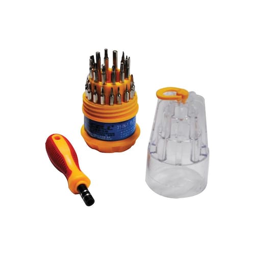É um prático e versátil kit com 31 pontas de chaves diversas, como fenda, philips, torx além de um prático estojo. Kit de chaves para manutenção e montagem de celulares e eletrônicos, evita que na manutenção danifique o seu equipamento com ferramentas inadequadas.
