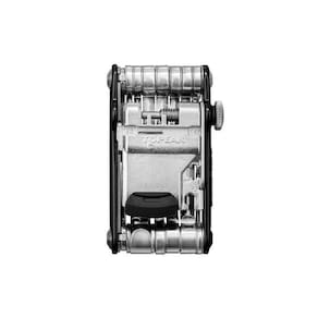 Mini ferramenta de precisão de 30 funções, de qualidade profissional e com ferramentas integradas de reparo de pneus sem câmara de ar. Ferramenta de corrente removível com a ferramenta de elo mestre integrada para remover e reinstalar correntes do tipo de elo mestre armazenadas com segurança dentro do corpo do Mini PT30. Corpo em liga forjada. Perfeito para qualquer reparo em estradas ou trilhas.