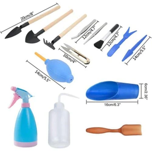 Herramientas de Jardineria de 14 Piezas 14 Pcs Mini Gardening Hand Tool Set: Perfeito para todas as suas necessidades de jardim, como escavação, capina, soltura de solo, aeração e transplante Shovel rake pá são feitos de madeira e aço, cabo de madeira é conveniente para usar, cabeças de aço inoxidável manter a pá de ancinho ainda novo após o uso repetido Transplante conjunto de ferramentas é combinado com uma ferramenta de mudas e uma ferramenta de transplante de uso duplo, pode ajudá-lo a soltar o solo, semear e transplantar mudas com segurança Dobrar o design da boca da garrafa de rega pode ajudá-lo a regar bem a raiz de plantas pequenas, o soprador de poeira de ar é macio, pode facilmente soprar a superfície Poeira de distância Fácil de transportar e leve. Este suculento conjunto de ferramentas de jardim serve como um presente perfeito para o amante da jardinagem Material: ABSWigeht: 290gNOTA:1, ya que las diferentes computadoras muestran los colores de manera diferente, el color del elemento real puede variar ligeramente de las imágenes anteriores.2, permita un error de 1-3 cm debido a la medición manual. Gracias por su comprensión3:Si tiene alguna pregunta, comuníquese directamente con el personal de servicio al cliente, haremos todo lo posible para resolverlo por ustedimageimage