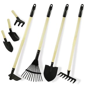 ferramentas de jardim para crianças - Inclui 7 ferramentas de jardim para crianças, conjunto de 4 peças de ancinho e pá para meninos e meninas de 4 a 8 anos, 3 ferramentas de jardinagem curtas para crianças pequenas - O comprimento das ferramentas de jardim longas é de cerca de 71 cm e o peso é de cerca de 300 g, é fácil de transportar para pequenos jardineiros. E eles são destacáveis, o que pode economizar espaço - O comprimento curto da ferramenta é de cerca de 18 cm, tamanho certo para crianças pequenas - Todas as ferramentas são feitas de cabo de madeira e cabeça de metal. Durável o suficiente para crianças que fazem trabalhos de jardinagem de verdade, leve o suficiente para crianças usarem - Ótimos presentes para meninos e meninas de 3, 4, 5, 6, 7, 8, 9, 10 anos de idade no Natal, aniversário...