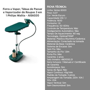 Ferro a Vapor, Tábua de Passar e Vaporizador de Roupas 3 em 1 Philips Walita - AIS6020