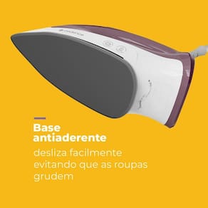 Moderno, funcional e seguro. Ele chegou! O ferro de passar que acompanha o seu ritmo. Base Antiaderente: Desliza suavemente pelos tecidos, evita que as roupas grudem e proporciona acabamento perfeito. Ponta Salva-Botões: Ideal para alcançar áreas difíceis, contornar botões e proteger suas peças. Ajuste de Temperatura: Selecione a intensidade ideal para cada tipo de tecido, garantindo cuidado e segurança. Até 1200W: Pronto para usar num piscar de olhos Cabo de 1,2M: Mais liberdade para se movimentar e mais conforto durante o uso. Selo de Segurança OCP SGS Garantia de 12 meses