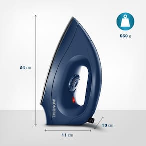 Aquele ferro prático que cabe em qualquer lugar... O Ferro a Seco com Base de Alumínio Polido FSN-55-BL azul da Mondial é um ferro de passar roupas que aquece rápido, desliza com segurança, tem 6 temperaturas e 1000W de potência. Com design anatômico, o FSN-55-BL tem estilo moderno e seu deslizamento fácil faz com que passar roupas não seja um sufoco ou musculação. Sua base de alumínio polido permite a distribuição uniforme e rápida do calor, portanto serve muito bem a quem não precisa de vapor para desamassar os vincos mais difíceis - e é perfeito para aqueles que gostam de dar uma alisada rápida nas peças antes de vestir e sair. O Ferro de passar FSN-55-BL conta com 6 níveis de temperaturas para ser adequado a tecidos dos mais leves e delicados aos pesados, de fios naturais. Com proteção e segurança, conta com salva-botões em toda a base e lâmpada piloto que indica quando está ligado. 1 ano de garantia, desenvolvido para uso doméstico.