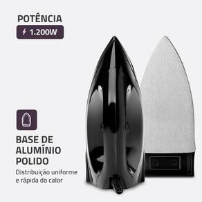 BASE DE ALUMÍNIO POLIDO: A base de alumínio desliza suavemente em todos os tecidos e garante uniforme e rápida do calor.