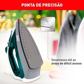 - Ponta de precisão: adaptada de forma perfeita para desamassar até as zonas de mais difícil acesso das suas roupas como entre os botões, no colarinho e nos punhos.