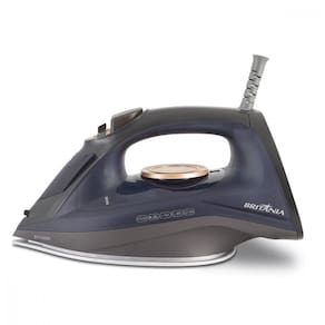 O Ferro Britania BFV2000 Ceramic possui funcao vapor extra com 38 saidas de vapor e base Nano Ceramic facilitando o deslizamento.