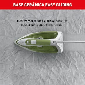 Utilizando o modo ECO, você economiza até 20% de energia elétrica, enquanto desfruta de resultados eficientes em um piscar de olhos.Sua Base de Cerâmica Easy Gliding oferece um deslizamento suave e eficiente, garantindo um cuidado delicado com suas roupas.