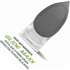 Com alta potência de |1200W para 127V| e |2000W para 220V|, este ferro é preparado para qualquer tipo de roupa. Graças à |Tecnologia Glide Maxx|, sua base antiaderente oferece um deslizamento muito mais suave, enquanto a função |Vapor Extra| ajuda a remover os vincos e amassados mais difíceis de forma prática e eficiente.