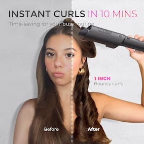 - Enrolar, sempre: o slot exclusivo de 0,8 cm e o guia de cabelo garantem que o cabelo esteja perto do barril, mas nunca se enrole, obtenha cachos consistentes sempre. Diga adeus aos cachos bagunçados.