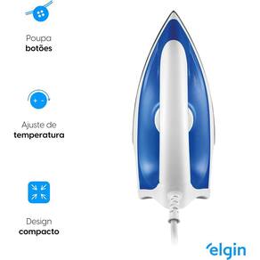 Se você quer praticidade e agilidade para passar suas roupas no dia a dia o Ferro elétrico de Passar a Seco Elgin é ideal. Possui base com revestimento antiaderente, design arrojada e compacto, é fácil de transportar pode ser levado na mala de viagem para deixar suas roupas passadas de forma rápida. Tem case com salva botões em toda a borda que não danifica os botões de camisas.