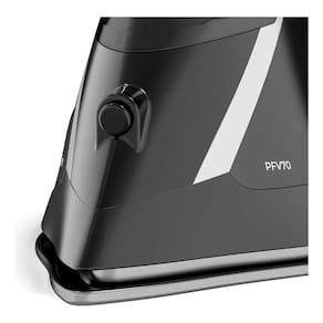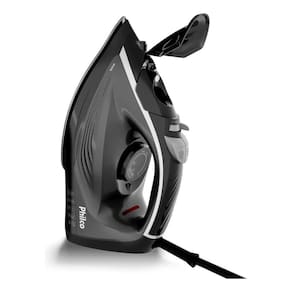 Ferro de Passar a Vapor Pfv70 127V Preto Philco, com base cerâmica para deslizar facilmente sobre os tecidos. Oferece vapor constante, aquecimento rápido e desempenho eficiente para roupas lisas e sem amassados no dia a dia.