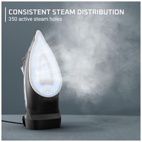 Base de aço inoxidável Deslizamento fácil em diferentes roupas, suavizando áreas de difícil acesso e 1725 Watts de potência a vapor Furos de vapor 350 Plus com jato de vapor de 180 g , min excelente distribuição de vapor e remoção poderosa de rugas Cordreel retrátil máxima facilidade de uso e zenamento Botão do termostato com 3 configurações Fácil de usar e selecionar a saída de vapor ideal com base no tecido Use água da torneira para engomar Encha o ferro facilmente com o orifício de enchimento fácil, tampa anti gotejamento e janela translúcida do tanque de água A segurança está em primeiro lugar com o rowenta sistema de desligamento automático de 3 vias para evitar acidentes