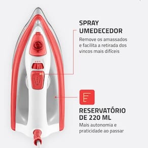 Vapor Contínuo + Spray Umedecedor: Remove vincos rapidamente.
