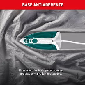 Além disso, possui vapor vertical, luz indicadora, sistema de autolimpeza e borda salva-botões, que protege os detalhes das roupas.