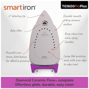 ProPlus Smart Iron Auto Lift basta tocar na alça e o ferro desce, pronto para trabalhar. Tire a mão e os protetores anti queima patenteados levantam o ferro, evitando que o tecido seja queimado ou queimado. Manter o ferro na horizontal não só é mais , mas também economiza tempo, bem como seus pulsos e ombros PLACA ULTRA LISA Base antiaderente com infusão mineral de diamante com fluxo de cerâmica, mesmo o calor, desliza sem esforço sobre todos os tecidos, a grande área plana de prensagem é durável, duradoura e fácil de limpar, mesmo nas situações mais difíceis. RESPOSTA RÁPIDA VAPOR TRIPLE PLAY Torna o ProPlus mais quente do que nunca Aquecimento rápido, 1800 watts para potentes rajadas de vapor horizontais, verticais e variáveis, que eliminam rugas e prensas em vincos agudos. Anti gotejamento evita vazamentos, e o sistema anti calcário mantém o vapor ProPlus trabalhando mais forte e por mais tempo. Todo ferro é totalmente testado com água antes de sair da fábrica, por isso você ainda pode encontrar algumas gotas no tanque. RECURSO EMBALADO Rugas teimosas, nenhum problema com spray de água embutido, tanque de água lateral de 400 ml fácil de encher. Cabo prático de com giro 360 para maior conveniência. Desligamento automático estendido de 30 minutos, ideal para quilting e costura