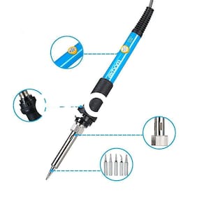 1x Ferro de Solda Ajustável [220v] 5x Ponteiras 1x Suporte 1x Esponja de Limpeza