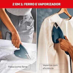 O Ferro e Vaporizador Duo Power 2 em 1 da é a revolução que faltava na sua rotina de cuidados têxteis. Versátil e inovador, ele permite alternar entre a função de ferro tradicional para vincos persistentes e a função vaporizador (steamer) para retoques rápidos e higienização diretamente no cabide, tudo em um único aparelho potente de 1550W.