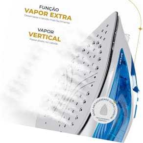 - **Quais são as funções disponíveis?** O ferro conta com |função vapor|, |vapor extra|, |vapor vertical| e |jato d’água|, tornando-o versátil para diferentes necessidades.
