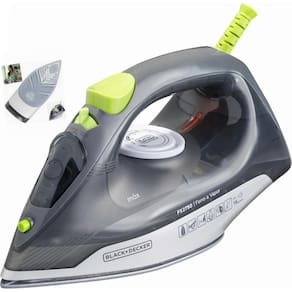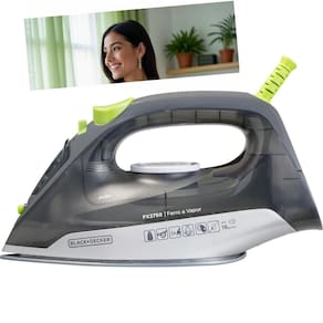 - **Marca:** Black+Decker - **Modelo:** FX2750-BR - **Cor:** Cinza escuro e verde claro - **Tipo de Ferro:** Seco ou Vapor - **Voltagem:** 110V ou 220V - **Capacidade do Reservatório:** 340ml - **Vapor:** Até 24g/min - **Cabo:** Giratório de 1,7m - **Base:** Ceramic gliss - **Potência:** 1200W - **Funções:** Vapor vertical, auto limpeza, spray frontal, vapor extra - **Garantia:** 1 ano - **Acompanha:** Copo medidor
