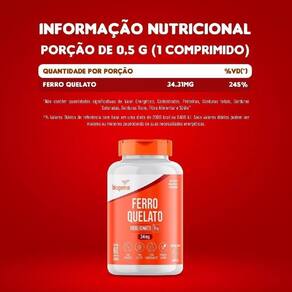 Ingredientes Ferro quelato bisglicinato, antiumectantes carbonato de cálcio, dióxido de silício, estearato de magnésio e polivinilpirrolidona.