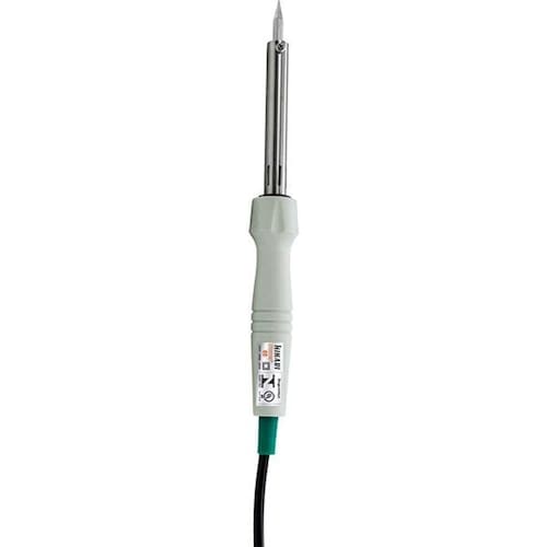 - Fácil reposição - Troca a ponta e resistência com apenas dois parafusos - Tubo ventilado - Dissipa o calor. Maior durabilidade da resistência. - PBT* Antichama - Esquenta menos a empunhadeira. - *PBT (Politereftalato de butileno) mesmo material utilizado em: tomadas, disjuntores e conectores elétricos. - Dupla Isolação - Protege contra choque. - Potência de consumo: 50W - Temperatura máxima: 510C - Comnto: 225mm - Peso Total: 160g - Conjunto de resistência e tubo metálico substituível - Resistência de mica - Ponta de longa durabilidade tratada com ferro e alumínio - Instruções de Uso: - Estanhe a extremidade da ponta ao ligá-lo pela ira vez. - Estanhe a ponta também todas as vezes que desligar o ferro para evitar oxidação. - Este procedimento aumenta consideravelmente a vida útil da ponta. - Os ferros de soldar devem ser colocados em suporte adequado quando não estiverem sendo s.