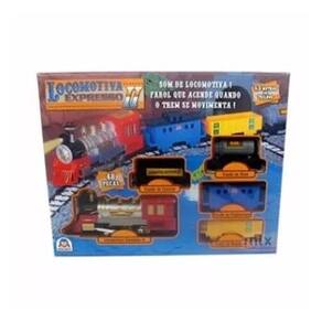 A locomotiva expresso II é movida a pilha, acende o farol quando está em movimento e emite som de locomotiva. O conjunto é composto por uma locomotiva + 4 vagões As peças são encaixáveis que podem ser montadas em vários modelos de pistas como a sua imaginação mandar. São 5,3m de trilhos e 48pçs.