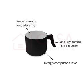 Fervedor Hercules Antiaderente Ceramica Soft Touch Preto 12x10cm Descrição: O Fervedor Hércules combina praticidade, rapidez e design moderno para a sua cozinha. Ideal para preparar bebidas quentes favoritas com facilidade e eficiência. Com acabamento soft touch e formato compacto, ele traz charme e funcionalidade, sendo perfeito para o dia a dia ou ocasiões especiais. Produzido com materiais resistentes como alumínio e baquelite, conta com revestimento antiaderente cerâmico que facilita o preparo e a limpeza. Pode ser em diferentes tipos de fogão, garantindo versatilidade para sua cozinha. Características: -diâmetro de 12 cm -design compacto e leve, ideal para qualquer ocasião -pode ir à lava-louças, facilitando a limpeza -revestimento antiaderente em cerâmica, que não libera componentes tóxicos -acabamento soft touch para mais conforto e elegância -compatível com fogões convencionais e halogênios -pode ser utilizado no forno até 180C Composição: 1 Fervedor 12 cm Altura: 10,5 cm Capacidade: 1,1 L Especificações: -linha: Soft Touch -material: Alumínio e Baquelite -certificação: Possui selo do Inmetro -: 3 meses Marca: Não Informado