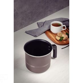 Praticidade e eficiência em sua cozinha com o fervedor Tramontina Sicília em alumínio com revestimento interno e externo em antiaderente Starflon Excellent avelã 14 centímetros de diâmetro 1,9 litros. Ideal para uso diário, ele é produzido em alumínio com revestimento interno e externo em antiaderente Starflon Excellent, características que juntas, aquecem os líquidos de maneira uniforme e evita que eles grudem em sua superfície. Seu cabo é em baquelite antitérmico, material que proporciona um manuseio mais seguro e confortável, pois não aquece. O fervedor ainda é muito fácil de limpar e pode ser levado à máquina de lavar louças, otimizando seu dia a dia! Orientações Corpo de alumínio com espessura de 1,8 mm que proporciona cozimento rápido e uniforme. Revestimento interno e externo de antiaderente Starflon Excellent que não gruda, é fácil de limpar, mais durável, não é prejudicial a saúde e é livre de PFOA.Cabo de baquelite antitérmico que oferece segurança durante o manuseio. Pode ir à máquina de lavar louças facilitando seu dia a dia. Características Gerais EAN13 7891112299627 DUN14 17891112299624 NCM 7615.10.00 Peso Líquido 0,4100 kg. Peso Bruto 0,5300 kg. Metragem 0,004147 m³. Dimensões Embalagem (Compr. X Larg. X Alt.) 192x 160x 135 mm. Dimensões Produto (Compr. X Larg. X Alt.) 195x 154x 127 mm. Diâmetro 14,0 cm. Capacidade 1,90 l. Espessura 1,8 mm. Cor 1 83786F Hexa Observações A capacidade volumétrica máxima para cozimento é de 3/4 da capacidade total da peça. Posicione o cabo do utensílio voltado ao centro do fogão. Em fogões com grade, centralize a peça e alinhe o cabo com a grade. Utensílios quentes devem estar fora do alcance das crianças. Este produto não pode sofrer modificações. Antes do primeiro uso, lave com esponja macia, sabão neutro ou detergente líquido. Depois de secar, unte a área interna com óleo ou gordura e leve ao fogo por um ou dois minutos. Deixe esfriar e lave novamente. Seu utensílio Starflon está pronto para uso com ou sem gordura, sempre em fogo baixo ou médio (nunca superior a 260ºC). Para mexer os alimentos use somente utensílios de silicone, nylon ou madeira. Limpeza: Evite a imersão do utensílio quente em água fria.Nunca utilize produtos abrasivos na lavagem. Se deixar queimar alimentos, umedeça a área e reserve até que possa remover os resíduos grudados com esponja e sabão. Para descarte do produto e embalagem siga as orientações de reciclagem vigentes. Este produto não necessita de manutenção, apenas limpeza.