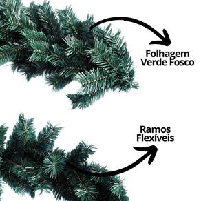 Transforme seus ambientes com a beleza e o volume deste festão natalino aramado verde, ideal para criar decorações elegantes e cheias de vida. Com 2,7 metros de comprimento e 23cm de largura, o modelo conta com 180 galhos, proporcionando um aspecto encorpado e natural.