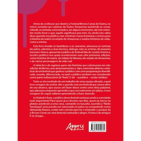 Antes de conhecer por dentro o Festival Breves Cenas de Teatro, eu estive sentada nas cadeiras do Teatro Amazonas assistindo às cenas, vidrada, encantada, emocionada e, em alguns momentos, até sem entender muito bem o que aquilo significava pra mim. Eu ainda não sabia disso quando era público, mas o festival cruzou fronteiras e entrou para a história do teatro no estado do Amazonas e mudou histórias de vidas, como a minha. Este livro invade os bastidores e os camarins, atravessa as cortinas do palco, adentra a área técnica, dialoga com os artistas de maneira honesta e franca, apresenta o público do festival, fala do cenário histórico, social e político nos quais aconteceram suas oito primeiras edições, conta histórias de teatro, da cidade de Manaus, do estado do Amazonas, e de vários personagens da vida real. A ideia foi a de registrar parte das histórias que culminaram em oito edições do Breves, seus atravessamentos e, claro, memórias afetivas e artísticas de um festival que ganhou o público com uma programação diversificada, ousada, diferenciada, na qual o público também era considerado como parte indissociável da “festa”. E ele – o público – soube retribuir. Trata-se do resultado de um trabalho de uma equipe afinada, a qual teve coragem de sonhar alto e grande com um festival que estava além do seu alcance, que ousou em fazer desse sonho uma ideia palpável, que planejou enquanto aprendia o que era realmente um plano, e teve coragem de seguir adiante aprendendo a fazer, fazendo. Se festival é festa, o público desse festival continua sendo o convidado mais importante! Para quem já se divertiu nas filas, quem já esteve na plateia assistindo a uma cena, cantando no karaokê, ouvindo a “Rádio Tambaqui”, procurando um namorado no palco ou competindo numa olimpíada bizarra, aceite este convite para ler e entender o porquê de o Breves Cenas ser uma festa tão animada e alegre. A festa é de amigos!É só chegar…