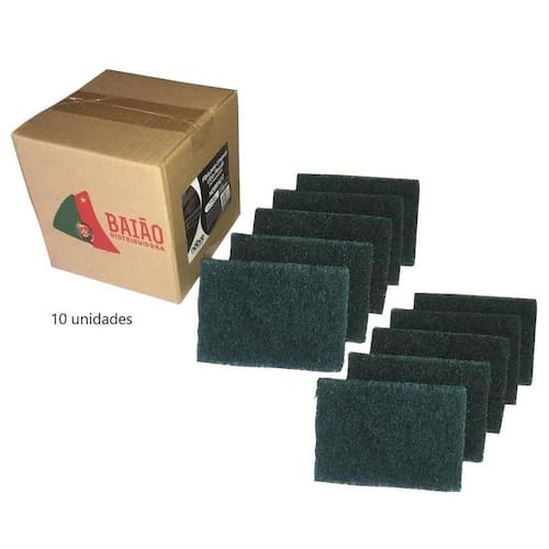 10 fibra de limpeza bettaço fibraço - bettaninIndicada para remoção de sujeira altamente aderidas às superfícies, como incrustações de gordura carbonizada.Pode ser utilizada para remoção de acabamentos e ceras em canto de difícil acesso.Importante: não utilizar em superfícies delicadas, pois causa riscos.Alvenaria: ideal para limpeza dos materiais grosseiros como tijolo à vista e os seus rejuntes.Remover areia e restos de argamassa.Metal: para remover oxidação.Madeira: para remover vernizes, fundos antigos e fibras deitadas.Descrição:Material: nylonMedidas: 12,5 x 8,7cmEspessura: aprox. 2,4cmQuantidade: 10 unidadesMarca: super pro bettanin