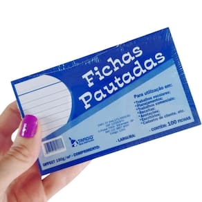 - Marca: Tamoio - Modelo: Ficha pautadas - Referência: 1202 - Contém 100 fichas - Cor: brancas - Com pauta - Gramatura: 150g/m - Dimensões: 15,2 x 101 cm LxA - Composição: papel off set Marca: Não Informado