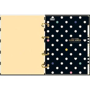 O Caderno Argolado Cartonado Colegial West Village 80 Folhas possui formato compacto, é leve e bastante funcional. Vem com capa dura com detalhe metalizado e parte interna decorada, divisórias, folha adesiva, folhas pautadas e bolsa plástica para guardar trabalhos e anotações.