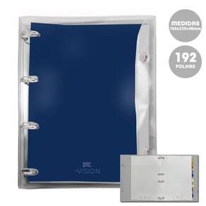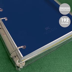 Fichário Colegial Vision Azul 4 Fechos 192fls Dac Os Fichários da DAC são referência no mercado e não só para quem é estudante. Ideal para estimular a organização dos estudos diários e alcançar as metas e objetivos sem perder a motivação. Cheio de versatilidade ao inserir ou retirar folhas, pois as argolas articuladas abrem, possibilitando esta ação. Estiloso no tamanho 1/4 foi feito para abrir ainda mais as opções de uso e ir além da utilidade na escola ou faculdade. Detalhes: Com 192 folhas decoradas, 6 divisórias plásticas, botão de fechamento e placa em plástico rígido para estruturação. Composição: PVC Cristal Formato: Colegial 1/4 - 15,5 cm x 22,5 cm Ean: 7897237344129
