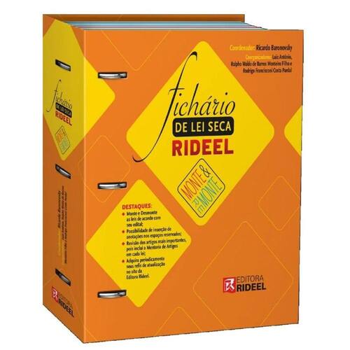Monte e Remonte as leis de acordo com seu edital. O Fichário de Lei Seca surgiu para revolucionar a leitura da lei seca, resolvendo cinco grandes problemas que o concurseiro e o acadêmico enfrentavam. Observe: 1. Quantas vezes você se questionou: manter um Vade Mecum desatualizado, mas com suas anotações pessoais de anos, ou adquirir um Vade Mecum atualizado, mas sem seus importantes registros? 2. Local reservado para fazer anotações entre os artigos. 3. Dificuldade (e risco) em transportar seu precioso (e pesado) Vade Mecum. 4. O problema do estado de conservação de uma obra com mais de 2 mil folhas. 5. Quais artigos de lei ler, sobretudo nas vésperas de prova? Este Fichário inclui, ainda, a mentoria da letra da lei em tabelas, tornando seu estudo ainda mais dinâmico e preciso. Adquira periodicamente seus refis de atualização no site da Editora Rideel.