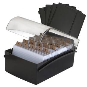 Organize suas fichas com o Fichário de Mesa para Fichas com Tampa Mais Kit com 12 Divisórias, este fichário é ideal para escritórios, salas de aula e qualquer ambiente que necessite de armazenamento prático e acessível de fichas.